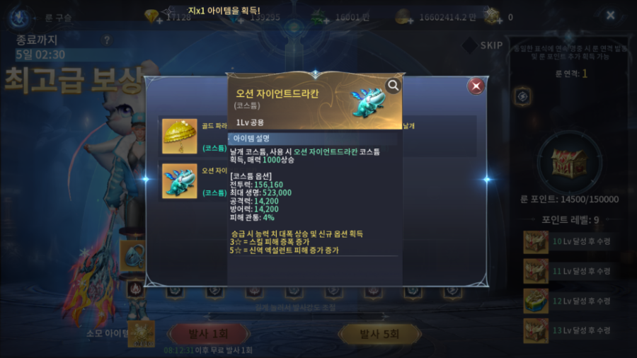 룬구슬 보상. 오션 자이언트 드라곤?? 날개 옵션은 어느게 맞는거여?