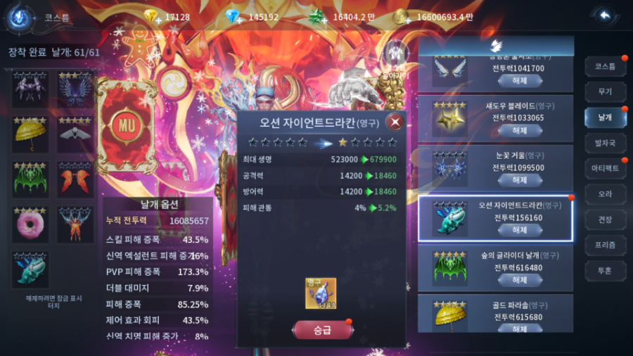 게시글로 올려주신 [오션 자이언트드라칸] 승급 옵션 부분은