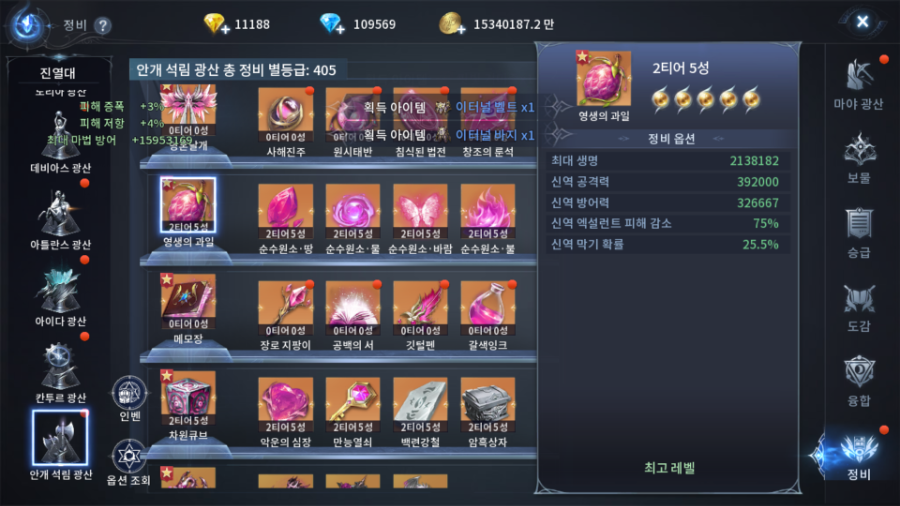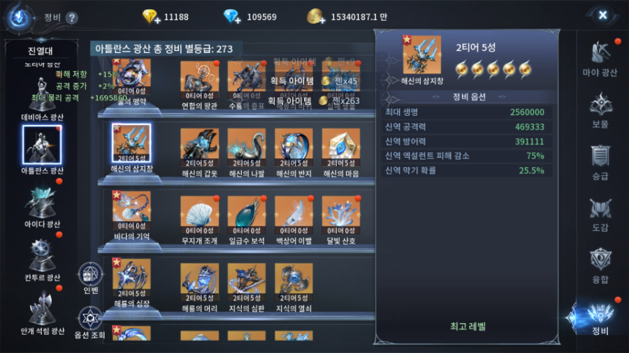 아틀란스 광산 보물 정비시.. 공격력 옵을 봐라...