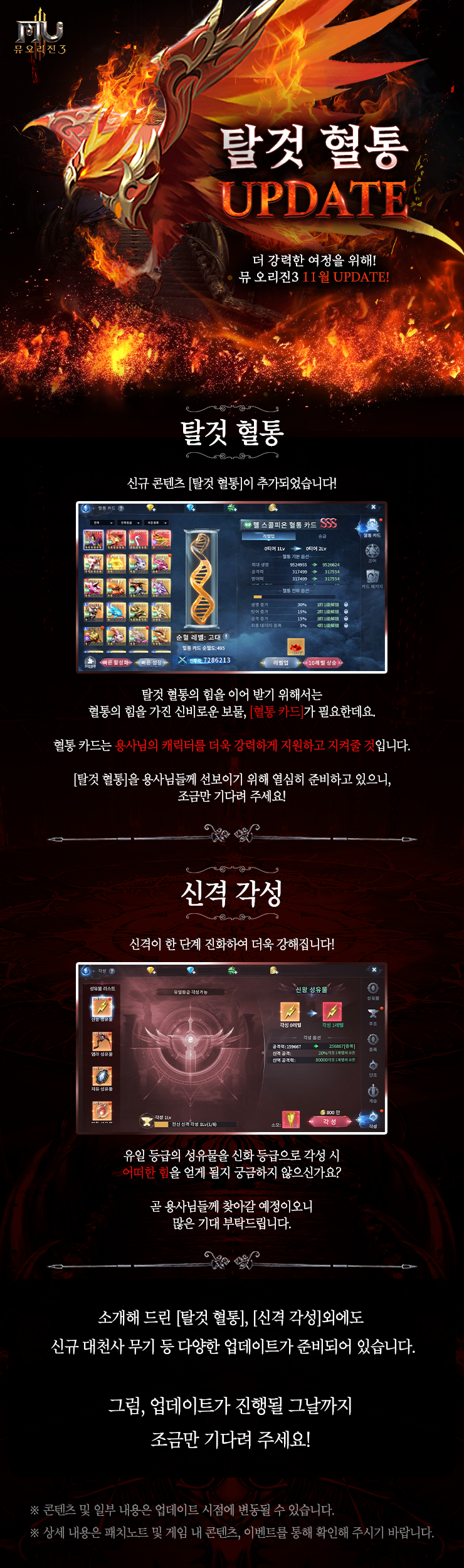 11월 신규 성장 콘텐츠인 "탈것 혈통"과 "신격 각성"